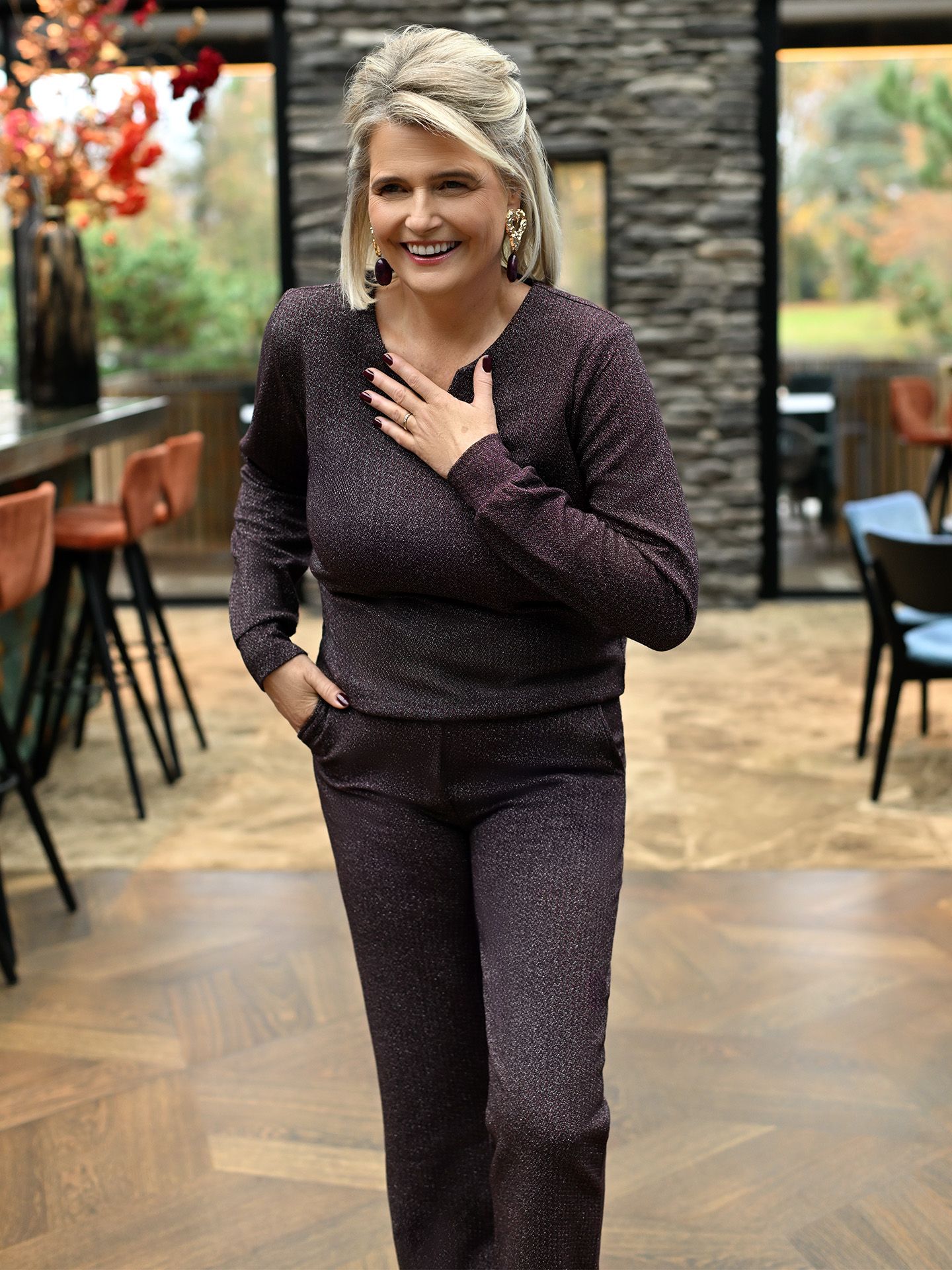 Diane is 1.75 m. en draagt haar kleding voornamelijk in maat 40/L.