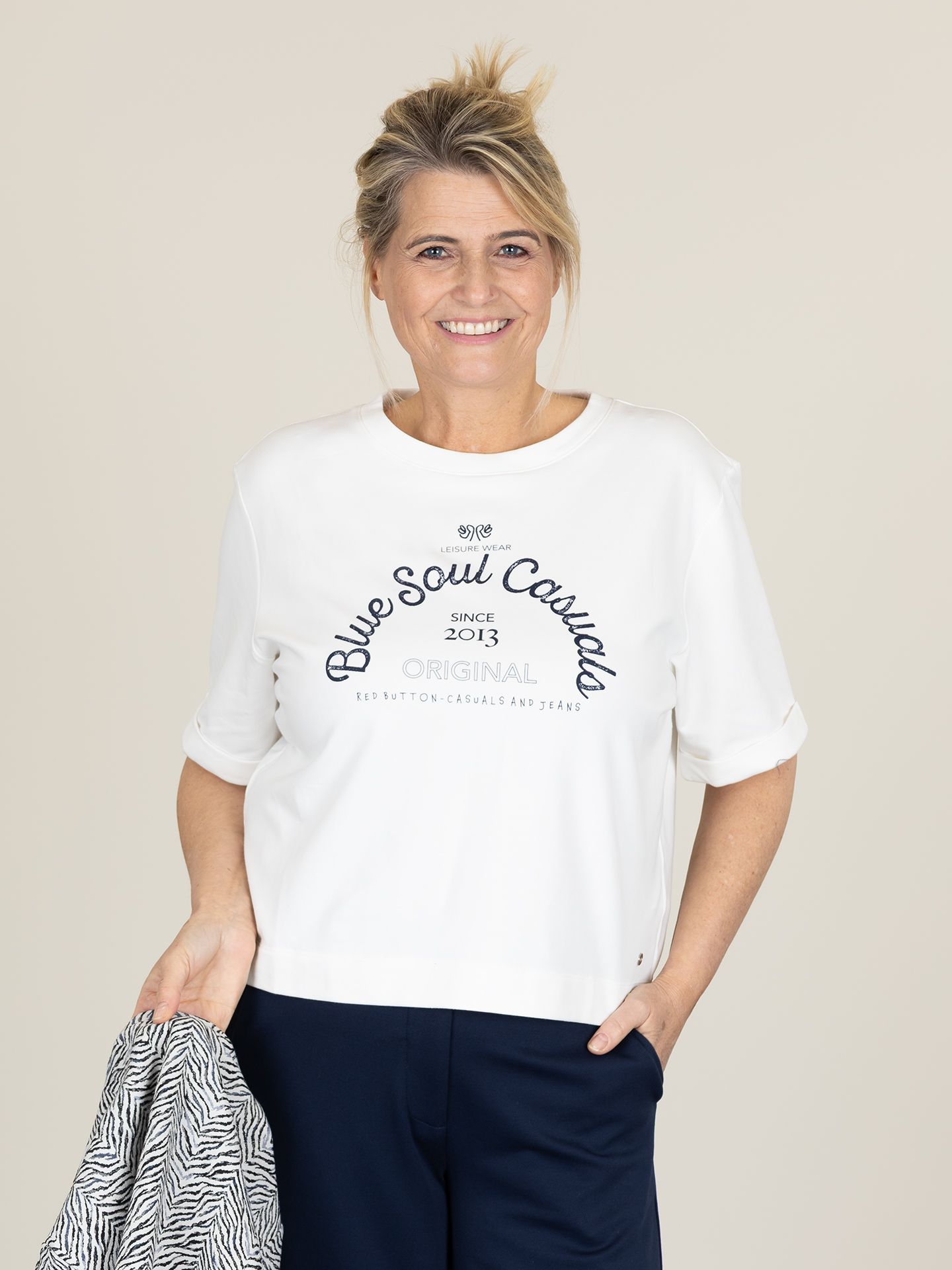 Diane is 1.75 m. en draagt haar kleding voornamelijk in maat 40/L.
