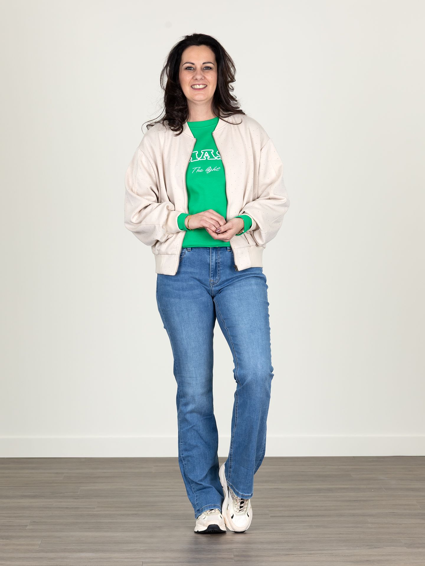 Susan is 1.80 m. en draagt haar kleding voornamelijk in maat 38/M.