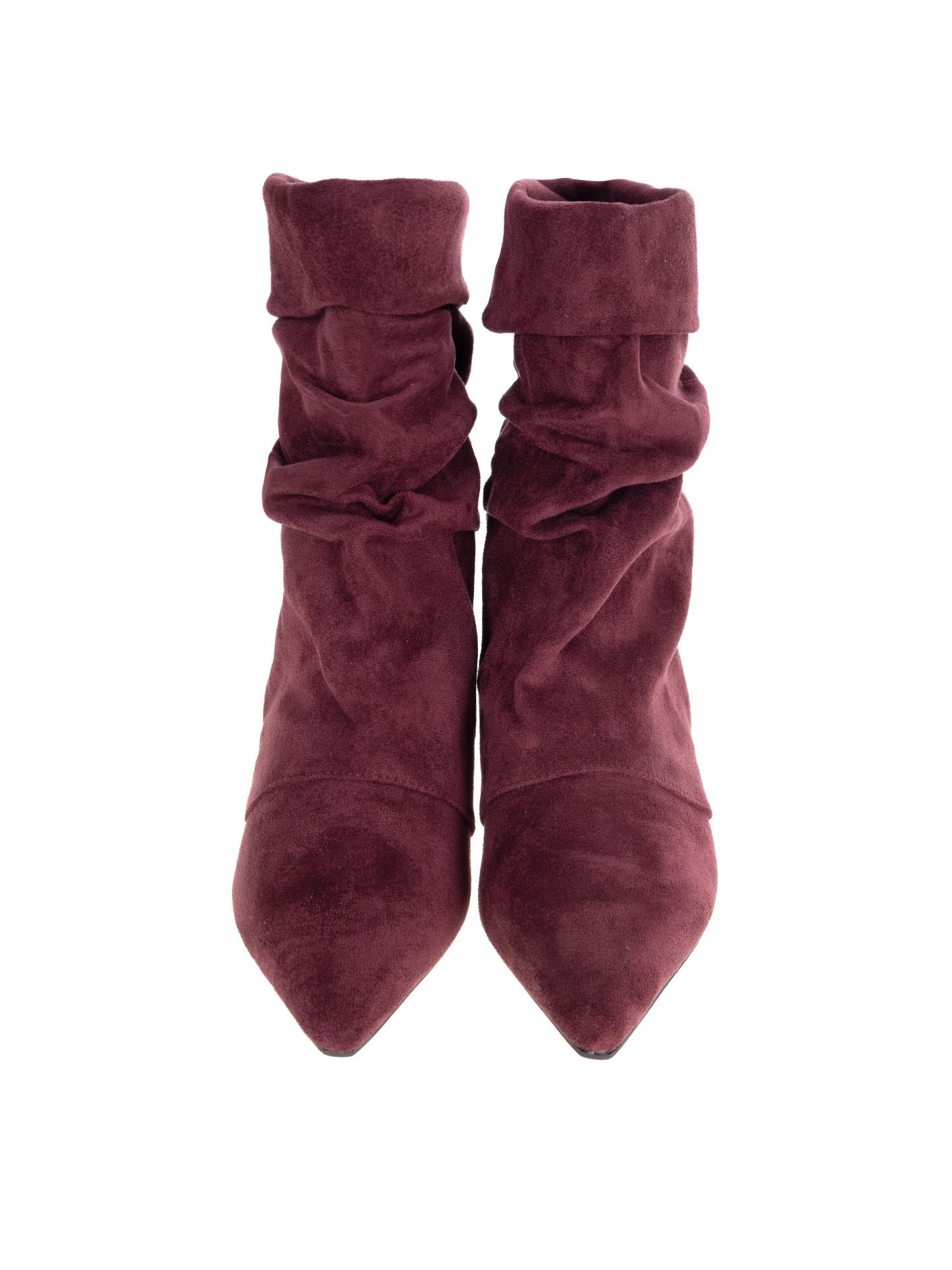 Elegante enkellaars met een zachte suède look en een geplooide schacht. De spitse neus en smalle hak zorgen voor een vrouwelijke en stijlvolle uitstraling. Perfect te dragen onder een jurk of rok voor een chique look, maar ook mooi te combineren met een strakke jeans.