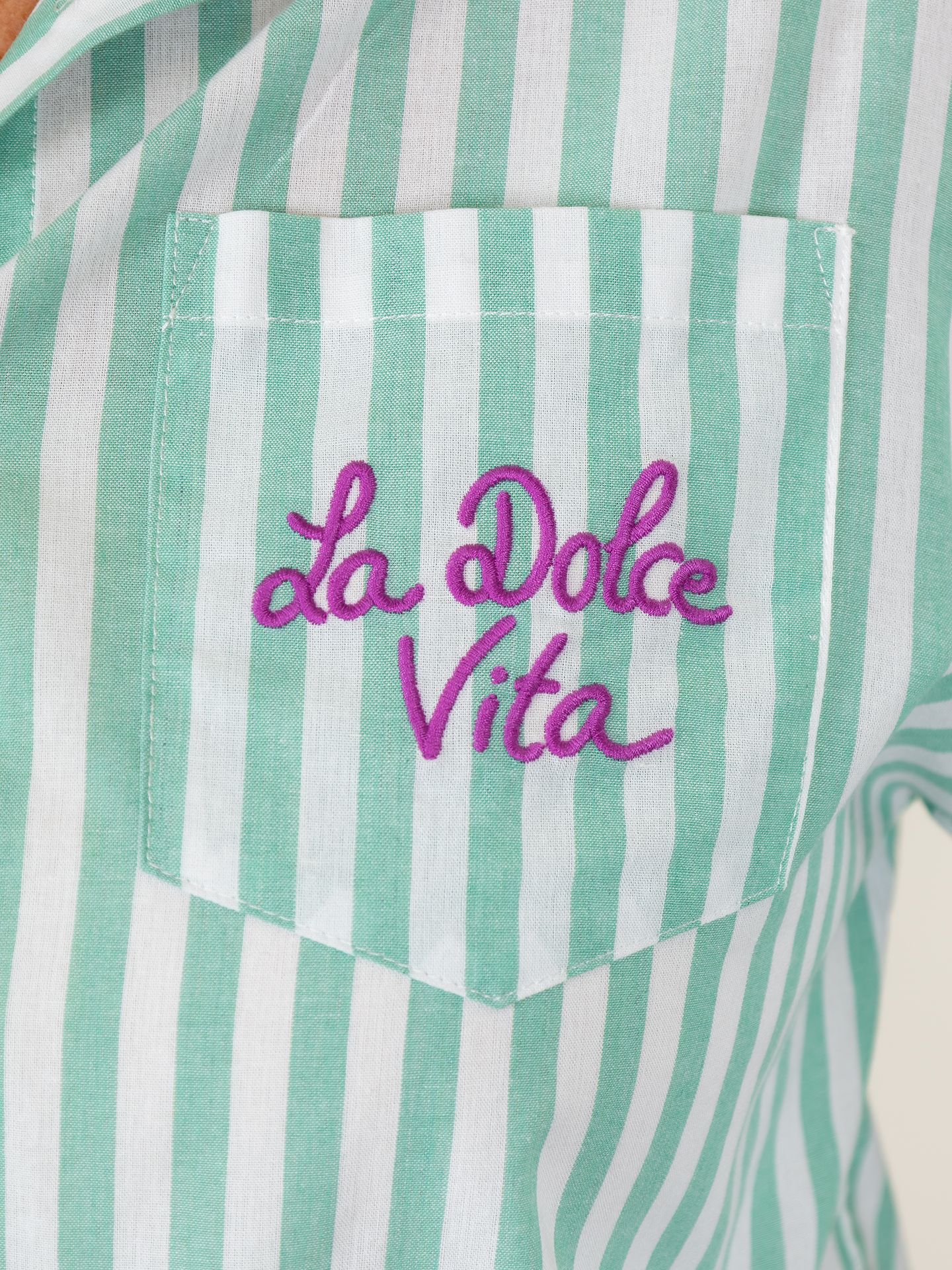 Marion is 1.67 m. zij draagt de jeans in maat 32, de blouse en blazer in maat M.