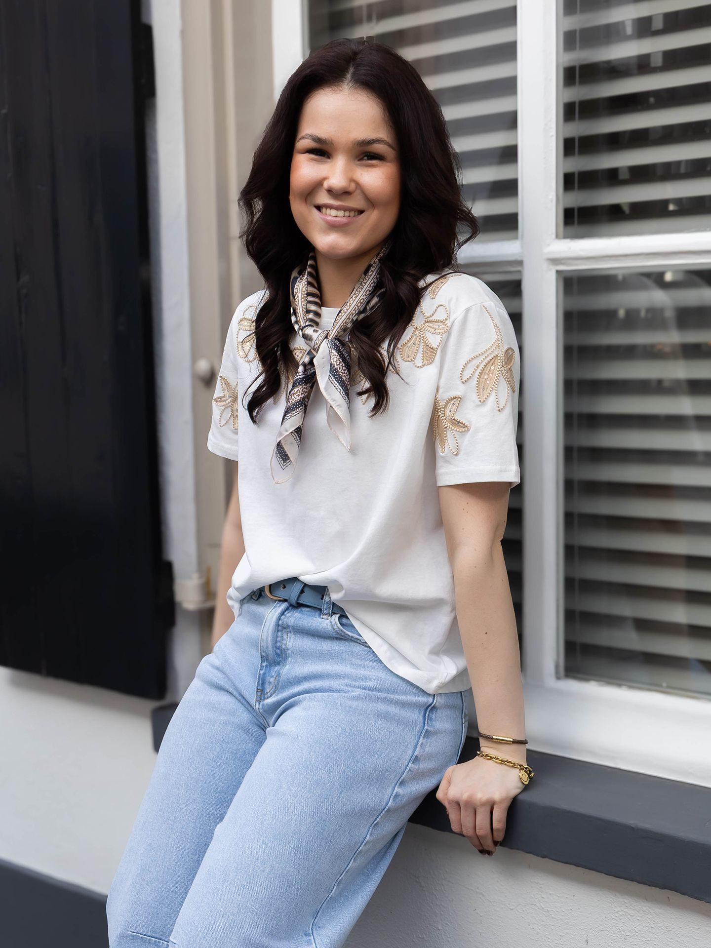 Maud is 1.70 m. en draagt haar kleding voornamelijk in maat 38/M.