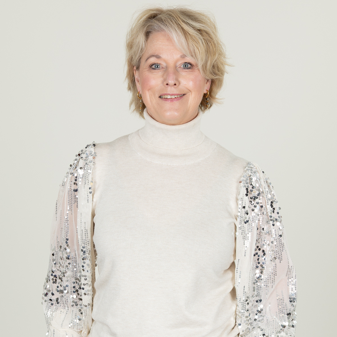 Janet is 1.60 m. en draagt haar kleding voornamelijk in maat 36/S.