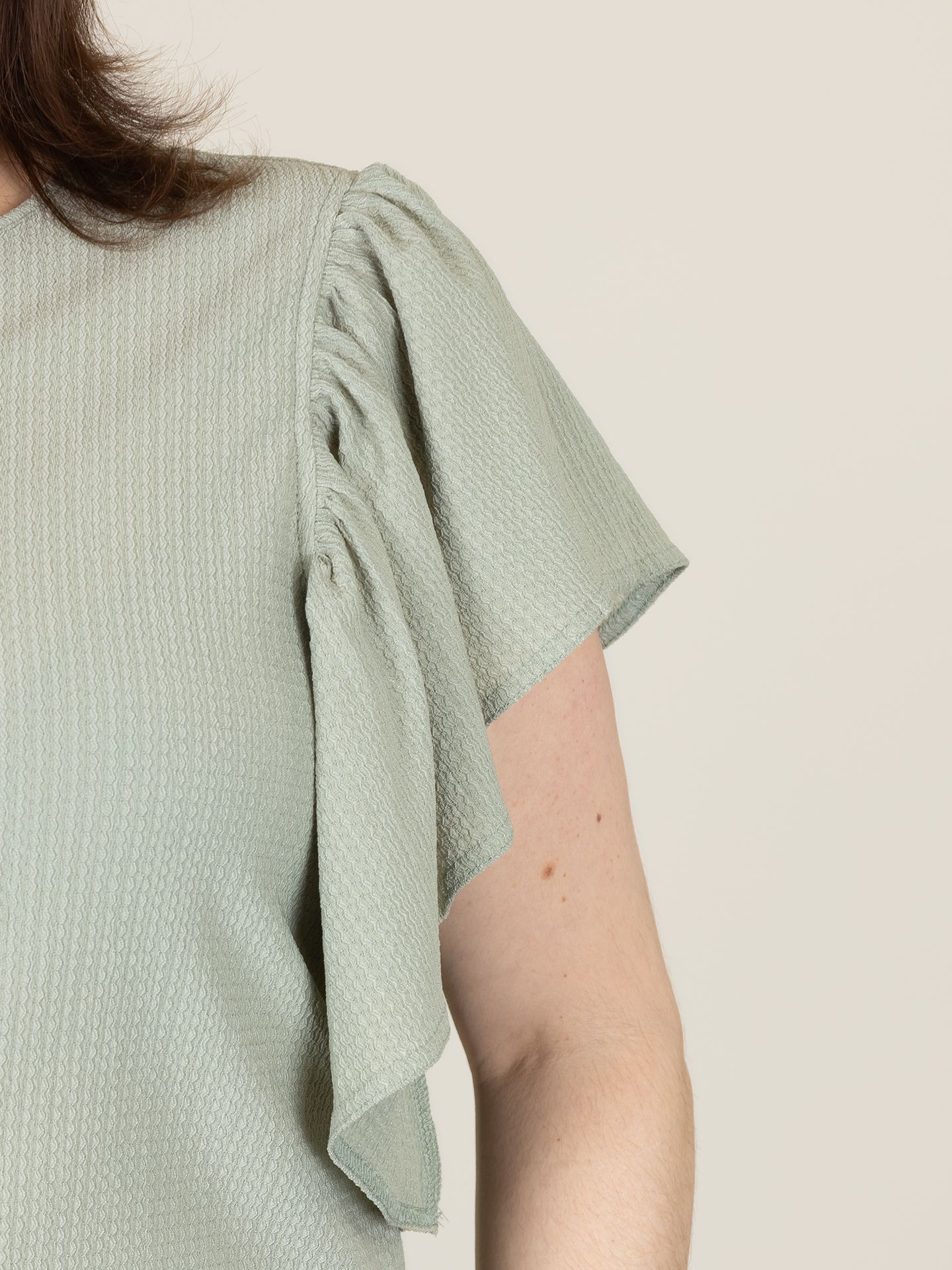 Stephanie is 1.68 m. en draagt haar kleding voornamelijk in maat 40/L.