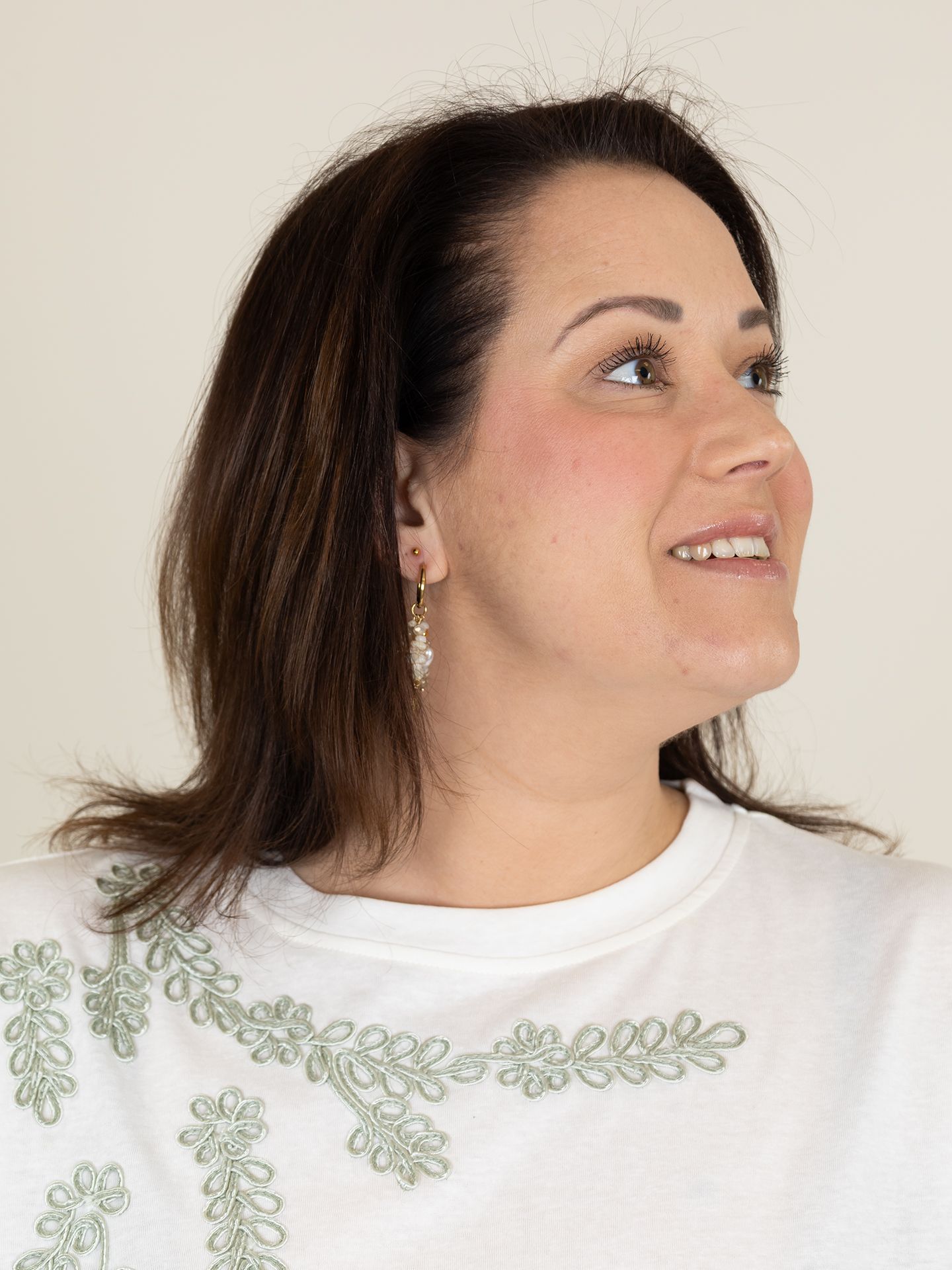 Stephanie is 1.68 m. en draagt haar kleding voornamelijk in maat 40/L.