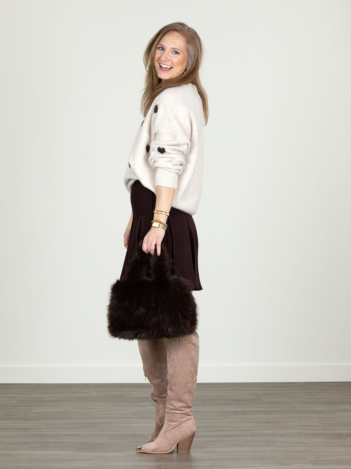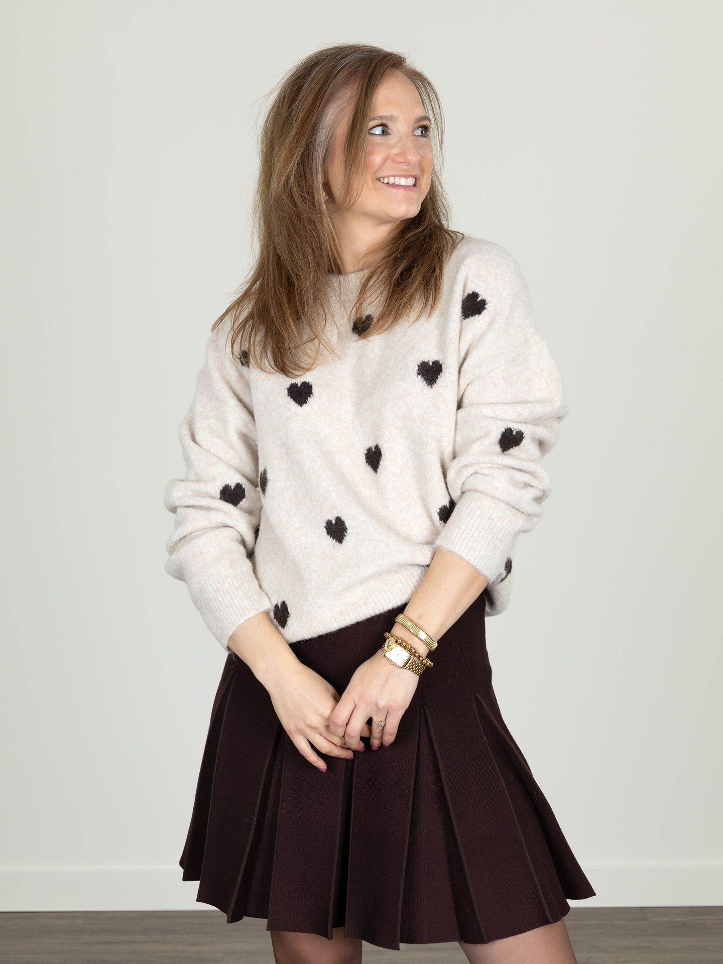 Wendy is 1.70 m. zij draagt de rok in maar S/M en de trui is one size.